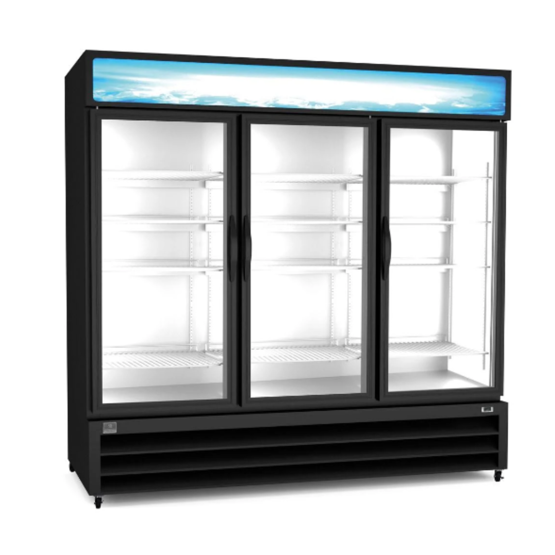 Upgrade your commercial refrigeration with the Kelvinator Commercial KCHGM72R, a robust three-section glass door merchandiser designed for superior performance and energy efficiency. With a massive 72 cubic foot capacity, this unit is ideal for displaying beverages, dairy, packaged foods, and more in high-traffic convenience stores, supermarkets, cafeterias, and retail environments.
