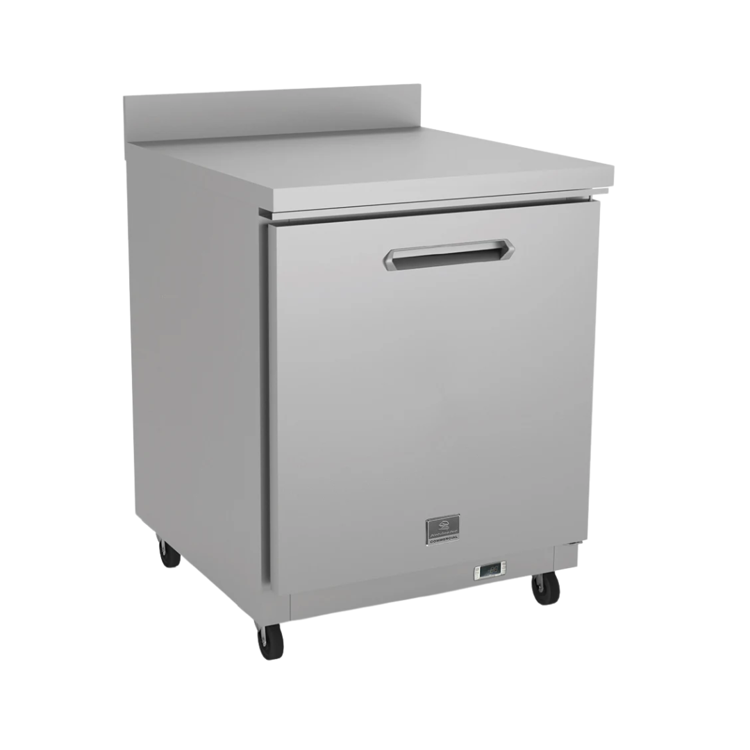 The Kelvinator KCHUCWT27F is a reliable and efficient 1 door undercounter worktop freezer designed for commercial kitchens that demand durability and easy mobility. Equipped with heavy-duty casters, this freezer allows for effortless repositioning to minimize strain on staff. Its sturdy steel worktop resists dents, warping, and rust, while the built-in backsplash prevents liquids from dripping down the back, ensuring a clean and hygienic workspace.