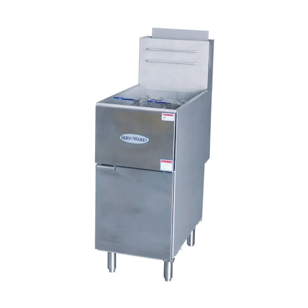 The Serv-Ware SGF-50L 4 Tube Natural Gas Fryer is a high-performance commercial deep fryer engineered for efficiency and durability in demanding kitchen environments. Built with a stainless steel front, top, and fry tank, it offers a sleek, professional look that’s easy to clean and built to last.
