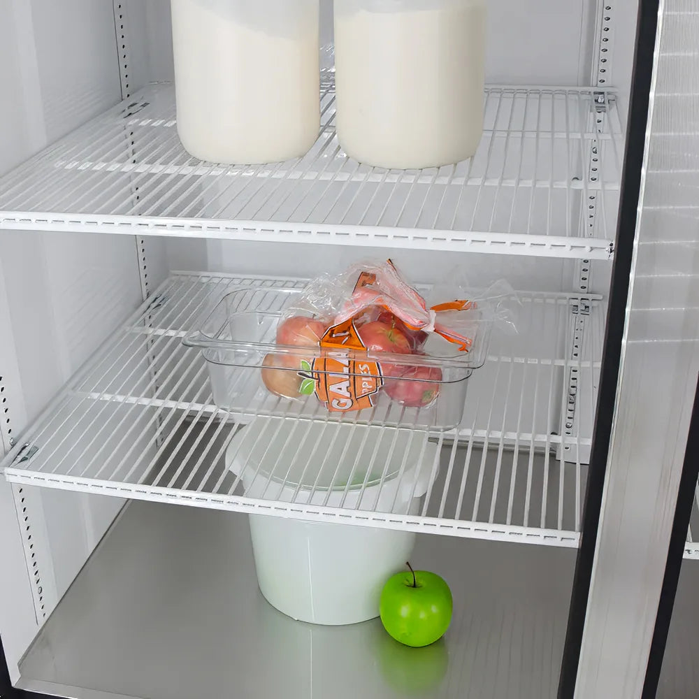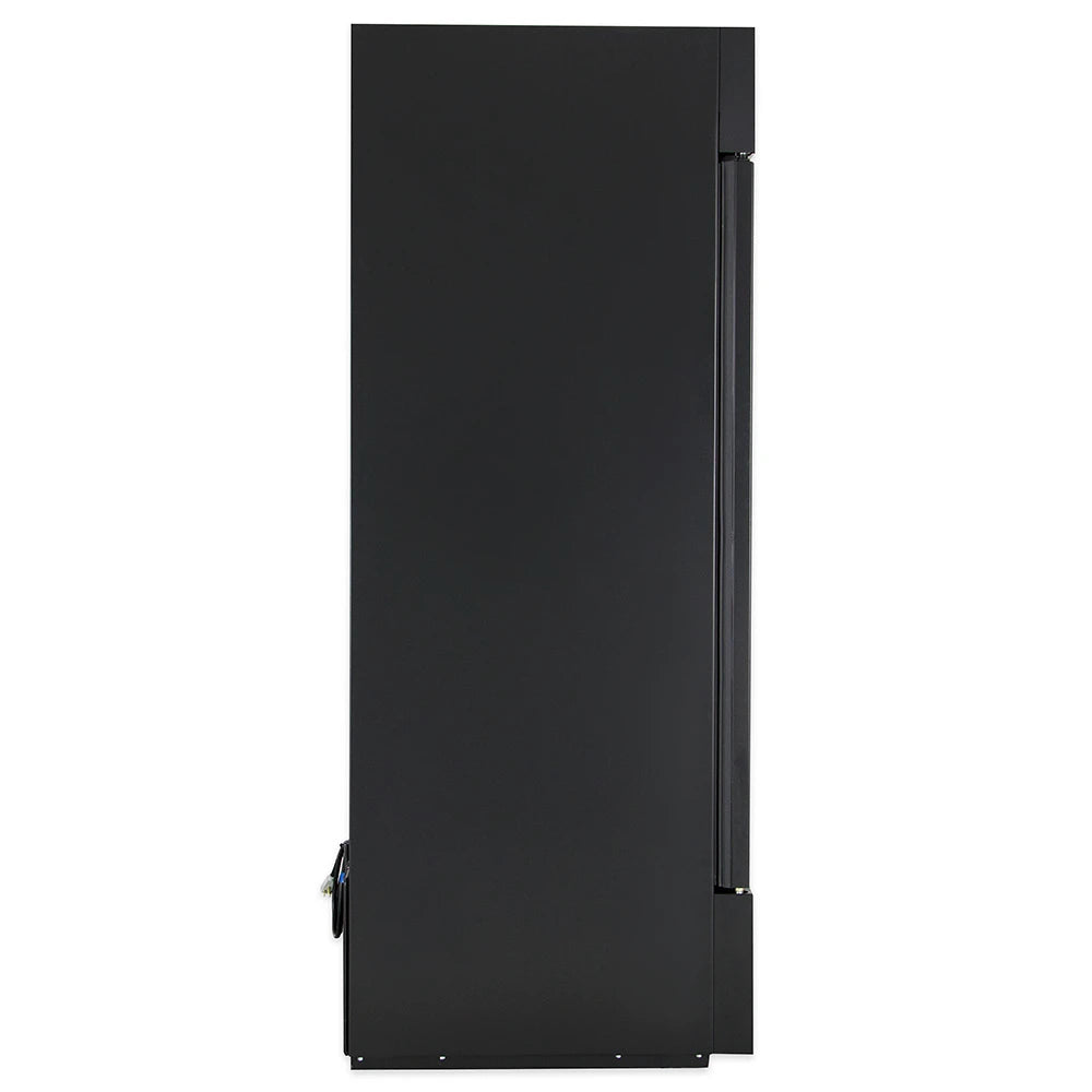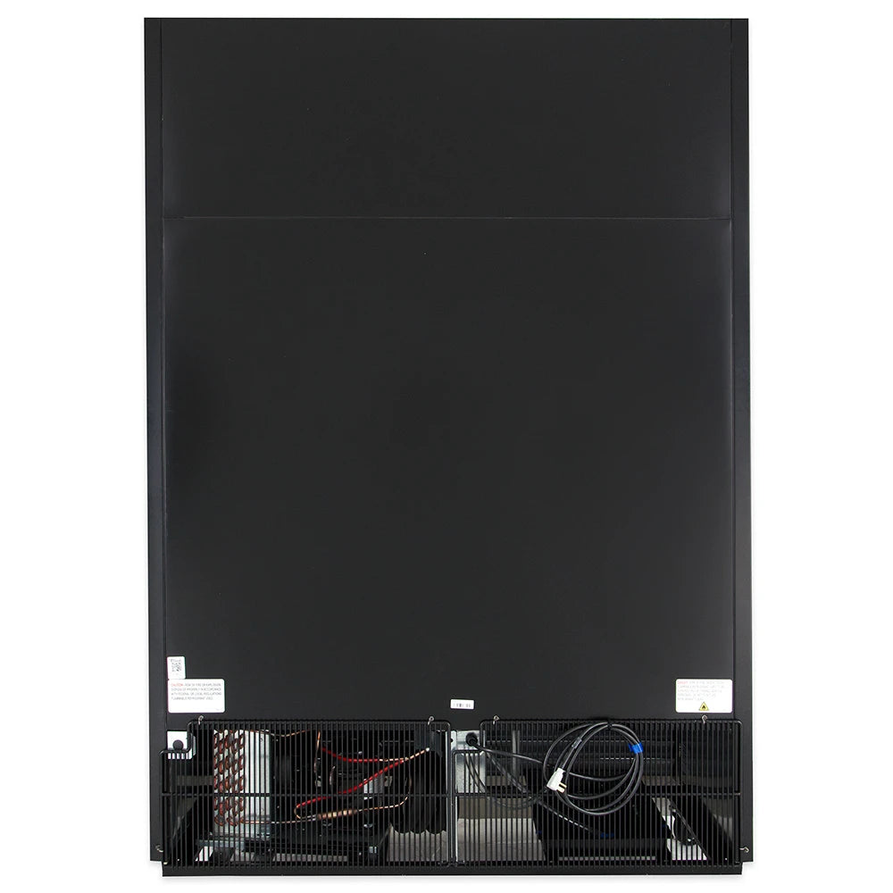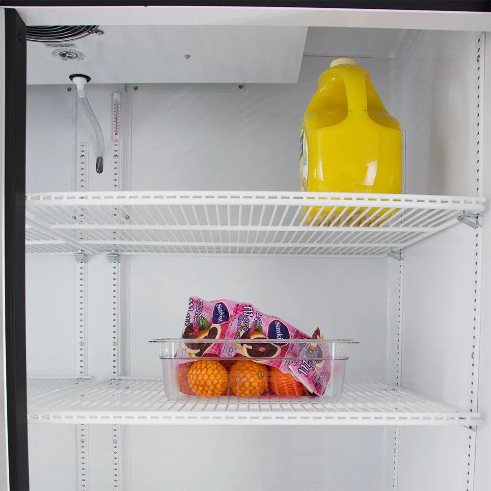 Inside, the unit includes 8 adjustable PVC-coated wire shelves with chrome-plated clips for flexible product arrangement. The white aluminum interior and stainless steel floor are easy to clean and built for durability. The cabinet's foam-in-place polyurethane insulation ensures maximum cold air retention, while the black powder-coated exterior resists peeling, chipping, and wear.