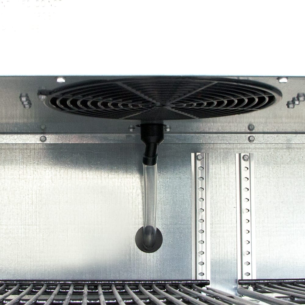 Equipped with four adjustable, PVC-coated wire shelves, the unit provides flexible storage options, while LED lighting ensures clear visibility inside. The R290 hydrocarbon refrigerant circulates through a capillary tube system, efficiently maintaining a temperature range of 33°F to 38°F to keep beverages ice cold and ready to serve.