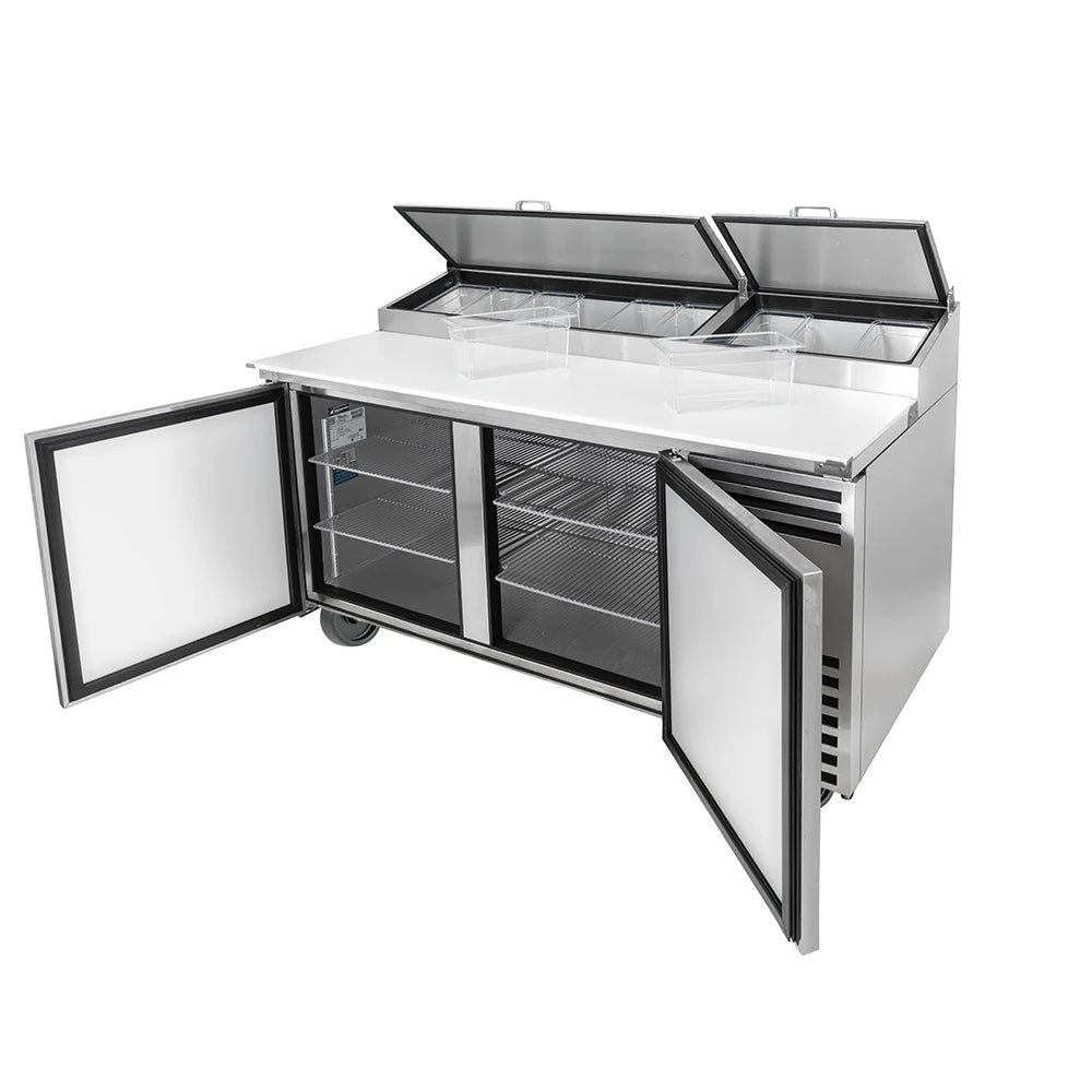 Elevate your kitchen efficiency with the True TPP-67-HC Pizza Prep Table, a premium solution designed specifically for high-volume pizza preparation. This 67.38-inch-wide prep table combines robust cold storage, a spacious cutting board, and convenient access to toppings—all in one streamlined unit.